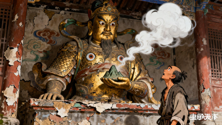 神像的眼睛“咔”地转了一下,像在笑,又像在哭。
